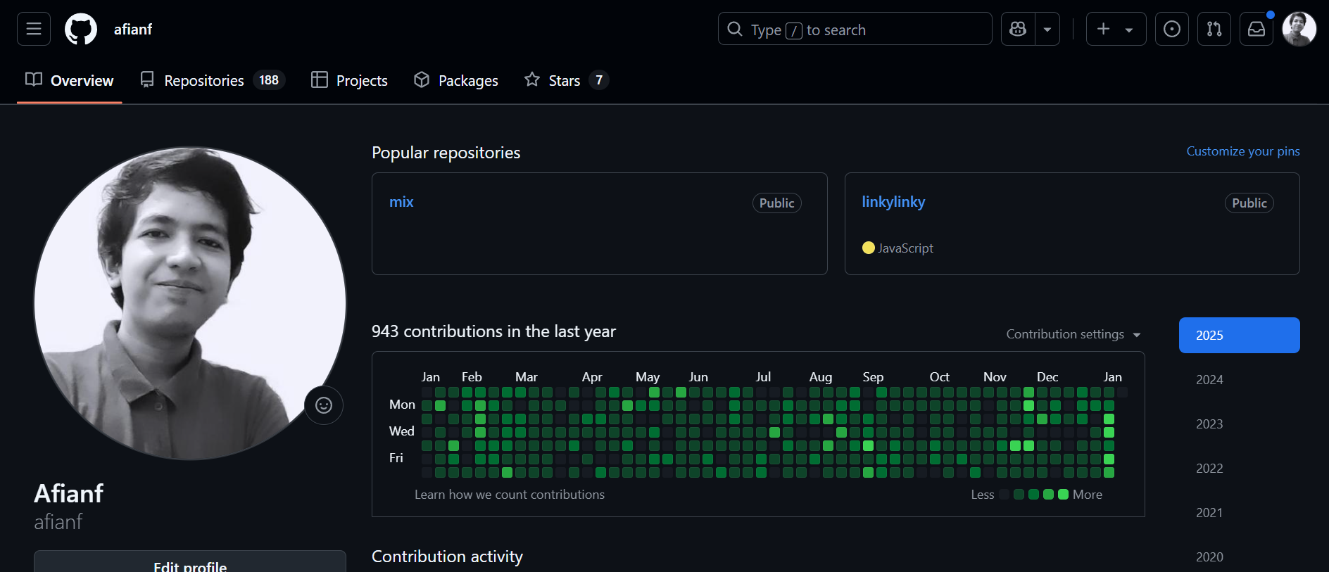 Akun Github saya cukup aktif. Setiap hari saya coding dan melakukan update di repositori proyek pribadi saya.