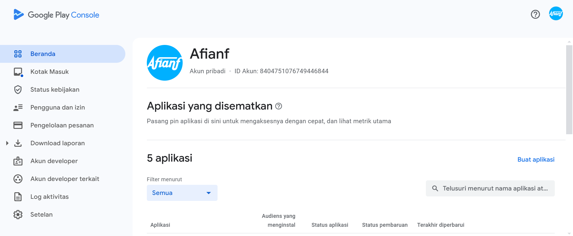 pada 2019, saya mempublikasikan aplikasi android pertama saya di Google Play Store menggunakan akun developer pribadi saya. Aplikasi saya buat menggunakan bahasa pemrograman Java. Sekarang akun dan semua aplikasi dalam penangguhan sementara karena saya ingin fokus dalam Web Development.